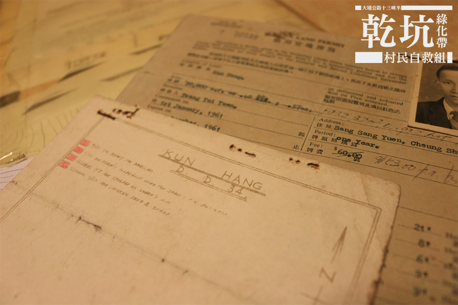 大埔滘乾坑綠化地帶去年被改劃為低密度住宅,多戶非原居民面臨被收地迫遷。由於網上能夠找到關於乾坑的歷史資料絕少,村民與組織者在過去數星期在土地契約、查冊及口述故事中,嘗試重組這條樟樹灘邊緣的散村歷史。