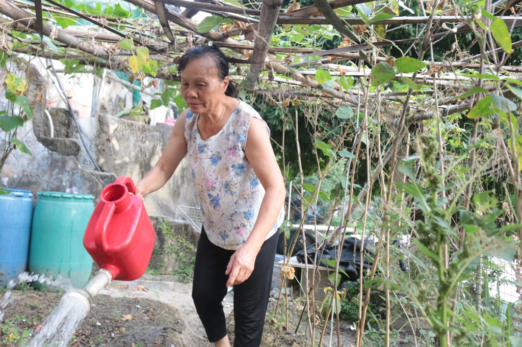 住在對面的彭太,住在丹桂村坑尾超過廿年。為了節省生活費,她煲湯不用石油氣,四圍執柴火;又在家後面利用防坡工程剩下的泥土開了一塊小田:「就當是我的娛樂吧,反正老人家也沒有甚麼事可做。而且種出來的菜也可以自己食,慳很多錢。」