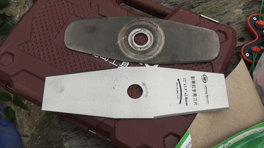 在開機之前,除了電油、偈油需要檢查,刀片也是剪草機需要注意的地方。刀片被撞崩部機不平衡就會搖,一搖就很危險。一般來說,剪草刀很耐用,一塊刀片可以用兩次,用蝕一邊後反轉把刀就用另一面,可以用一兩個月;但新興農場農場很多石仔、鐵柱,經常不小心會撞到,不斷磨損之下一塊刀片大約只可以用十小時。