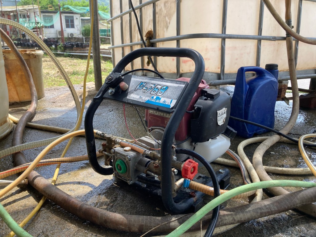 信芯園使用的液肥缸為1噸,如果單靠背揹式的噴霧可以稱得上杯水車薪。所以機械的應用十分重要。汽油機與剪草機機頭完全一樣,只是傳動軸之下設計不同。入油後同樣要檢查偈油,拉繩發動的操作過程亦與剪草機大同小異。