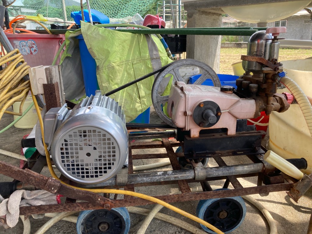 在規模龐大的農場施肥並不容易,機械化之餘也要視乎農場的規劃而使用適當設計的噴灑裝置。信芯園信哥除了使用汽油機之外,亦會使用三相感應摩打發動水泵,將肥料缸的液肥泵噴灑,兩者互有優劣,亦互補不足。