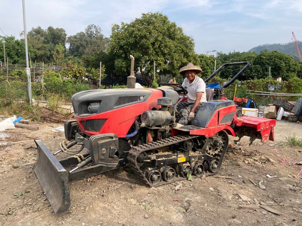 「這部大機,兩小時就可以推平兩斗田,人手不足的情況下這很重要。」信哥本身有考慮買入80匹馬力的款式,然而擔心農場田基無法容納決定買細一個碼。這部50匹拖拉機索價不足十萬人民幣,以柴油驅動,動力十分充沛。用履帶牽引可以在狹小的田間原地旋轉,在地形多變的農場更顯靈活。使用經驗尚在累積中,即使使用拖拉機之後,也要用微耕機在泥面將未完全處理的部分再犁田。