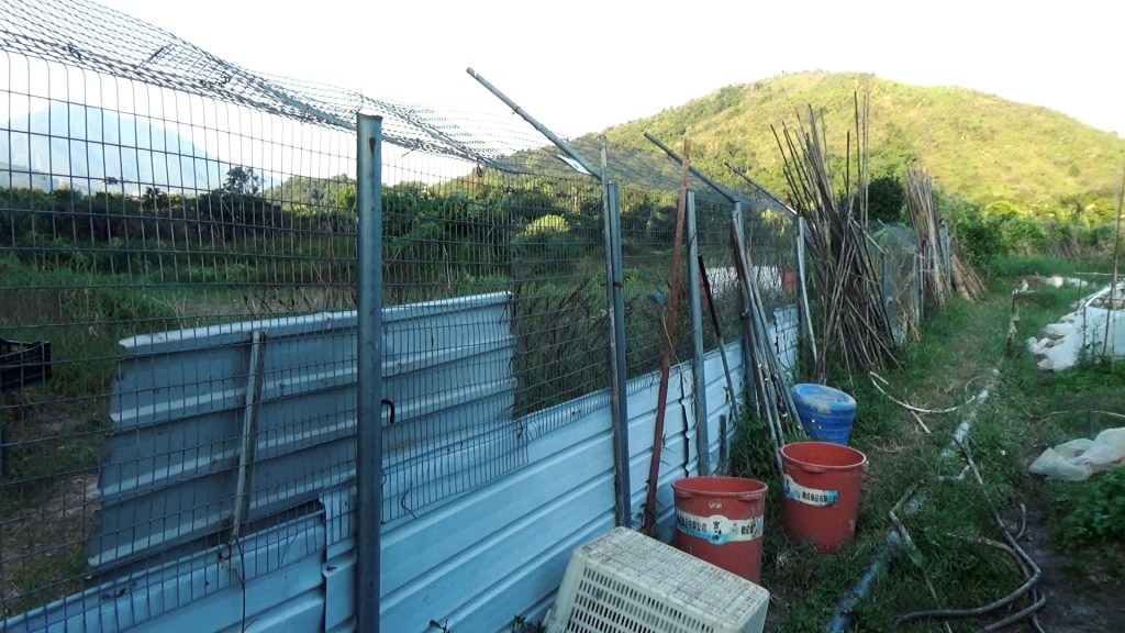 不是每個農場都有條件起長城,元朗大棠的藍妹有機農場同樣都面對野豬問題,芋頭和番薯都是野豬的目標。農夫最主要的應對方法,是將野豬喜愛的作物種在遠離山邊的位置。然而這個做法都不是百份百安全。