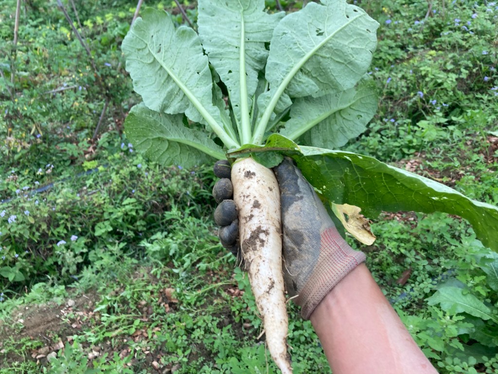 但在種植上,在冬季只分配了一行種植兩批早水蘿蔔,主要是自用;香港蘿蔔主推的遲水蘿蔔蘿蔔被排除在農場的量產計劃以外,新興農場一眾農友,只有 @f 種植約100斤。