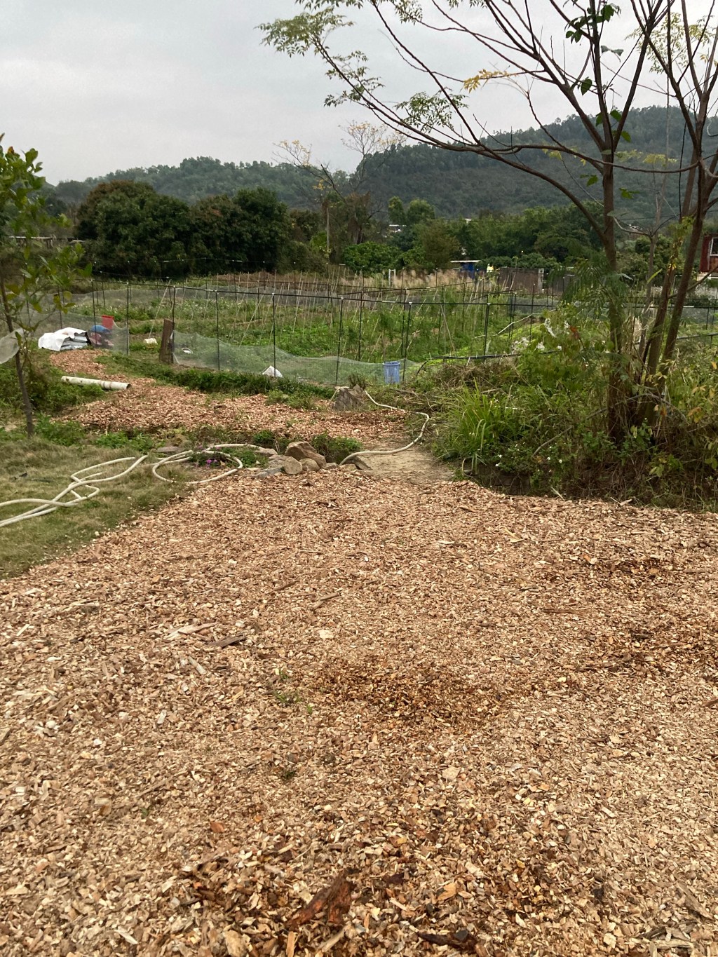 去年6月位於屯門稔灣的環保署園林廢物回收中心「Y · PARK」啟用後,開始開放業界申請取用木碎或木糠。我們曾經兩度向回收中心領取木碎,主要希望防止非耕種用途的田基路面雜草叢生,同時又不需要將這些位置水泥化,方便農用機械的通行。