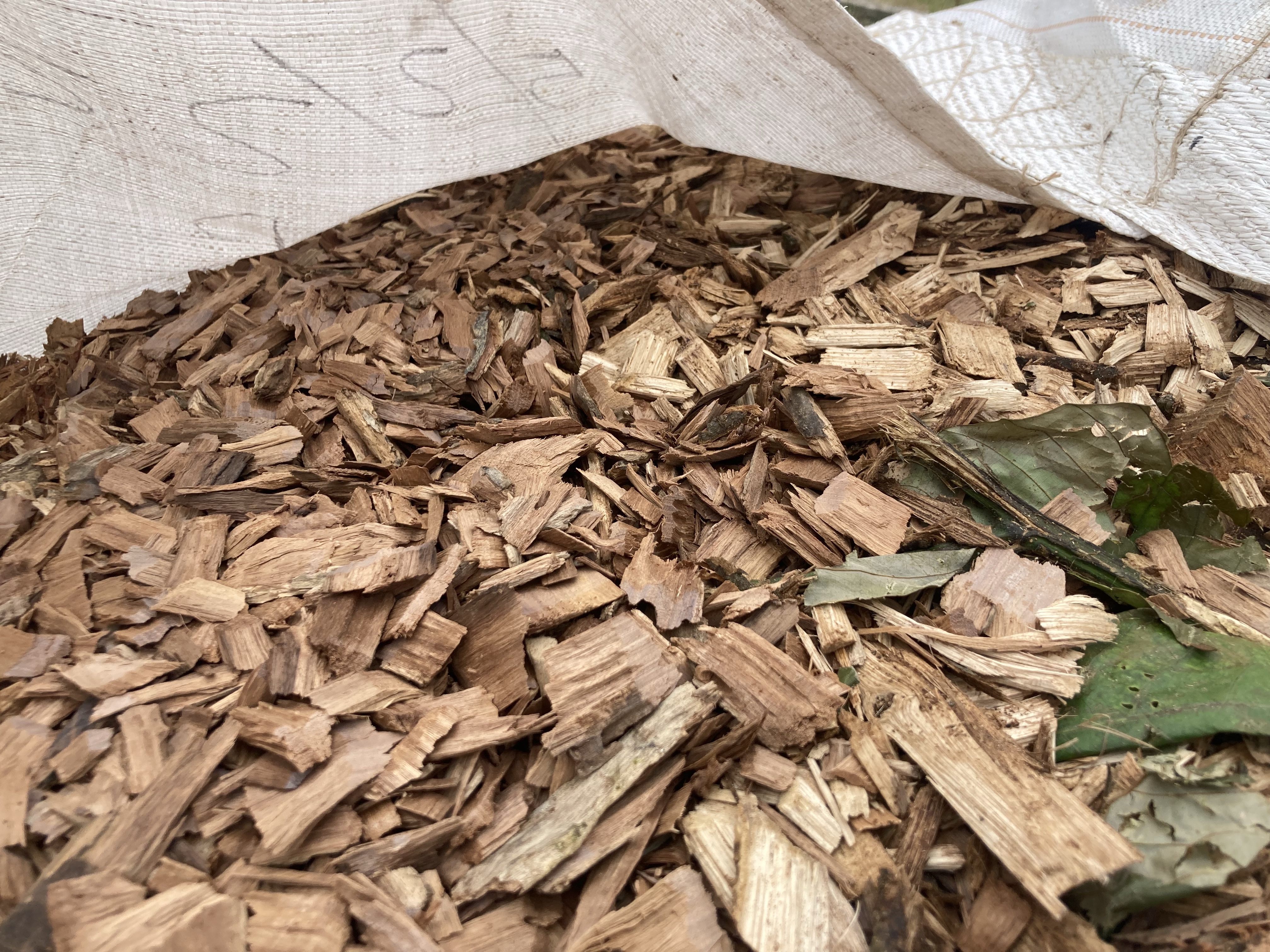 我們聯合農場幾個單位申領了兩次混合木碎,申請以噸為單位,並會分成一袋袋包裝。以我們領取3噸計算,一共分為裝上14袋,每一袋約重200-300kg。領取這些園林木碎不需收費,但如果領取數量大,就要留意運輸成本。
