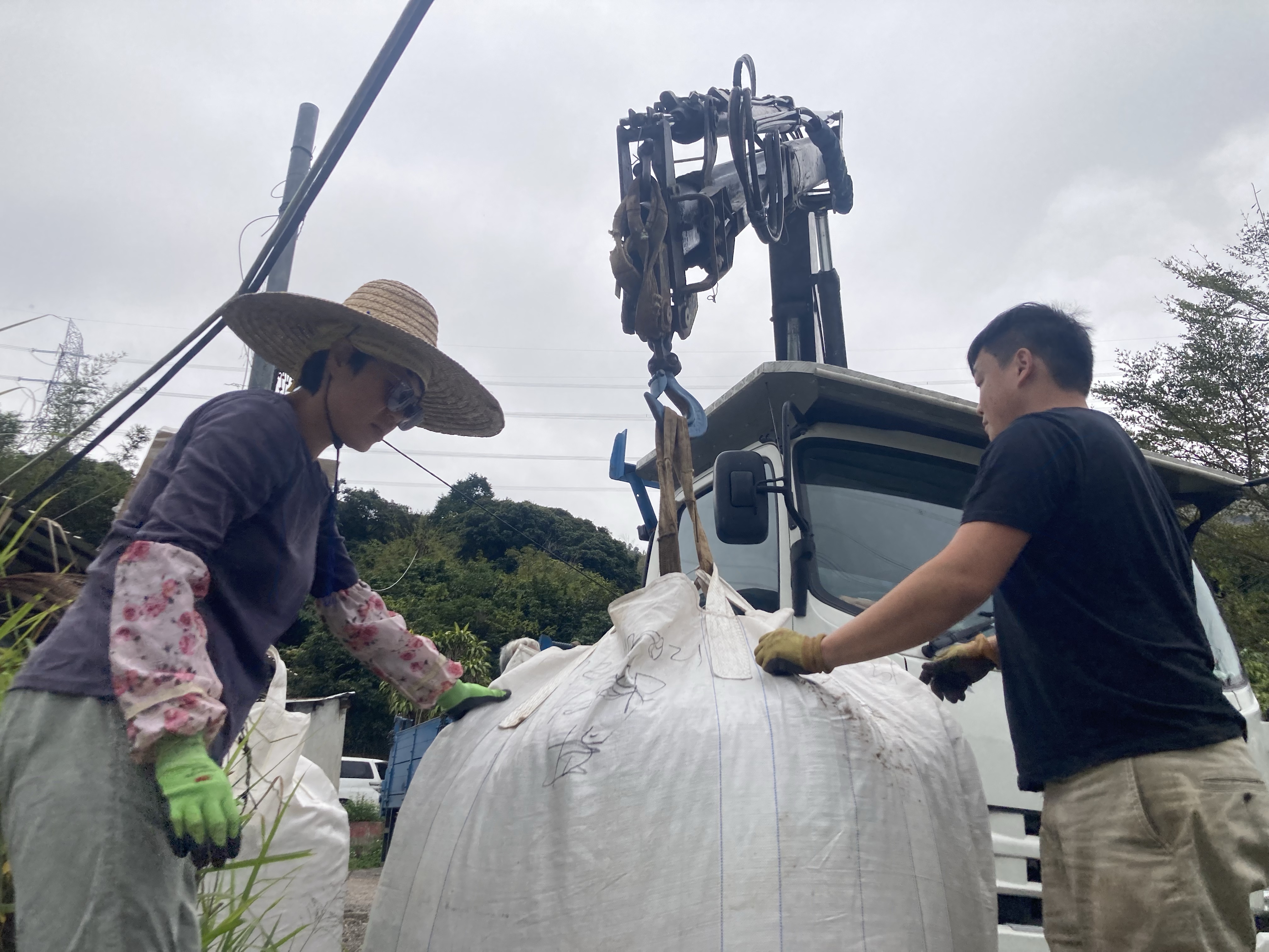 在落貨後如何將木碎推入農場、以及在農場內運,都是要大家注意地的方。一般來講農友可能會叫5.5噸或9噸貨車,但一定要記得安排唧車將卡板唧走,只適合路面平坦的農場。另一個選擇是叫吊雞車(吊運車),市面的吊雞車9噸、12噸、16噸、24噸、30噸等。