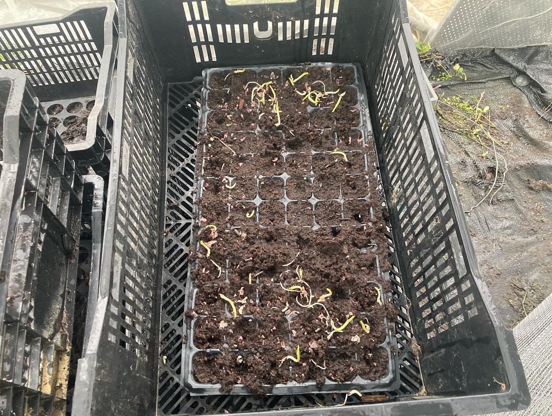 補回一批苗後,再用膠網圍起培苗盆,及檢查有否空檔能讓但兩日後連培苗盆都被咬爛,而且食得更多,此時已損失接近1000粒種子。最終決定在田邊剷出一片小空地,並在粟米100參與者協助下,搭建一個部的培苗區,啃食的情況才有所改善。
