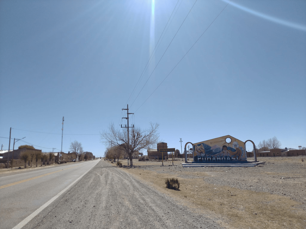 由Tilcara到Pumahuashi路途間大多數都是峽谷和荒漠,不少植被都是仙人掌類植物,人類建設則以牧場為主,在大約路程2/3時會經過一座名為Abra Pampa的小鎮,也是繼續北上前最後一個補給點,這時海拔高度已高達3600米。經過2個半小時的車程,終於來到了地圖上距離香港最遠的定居點Pumahuashi。